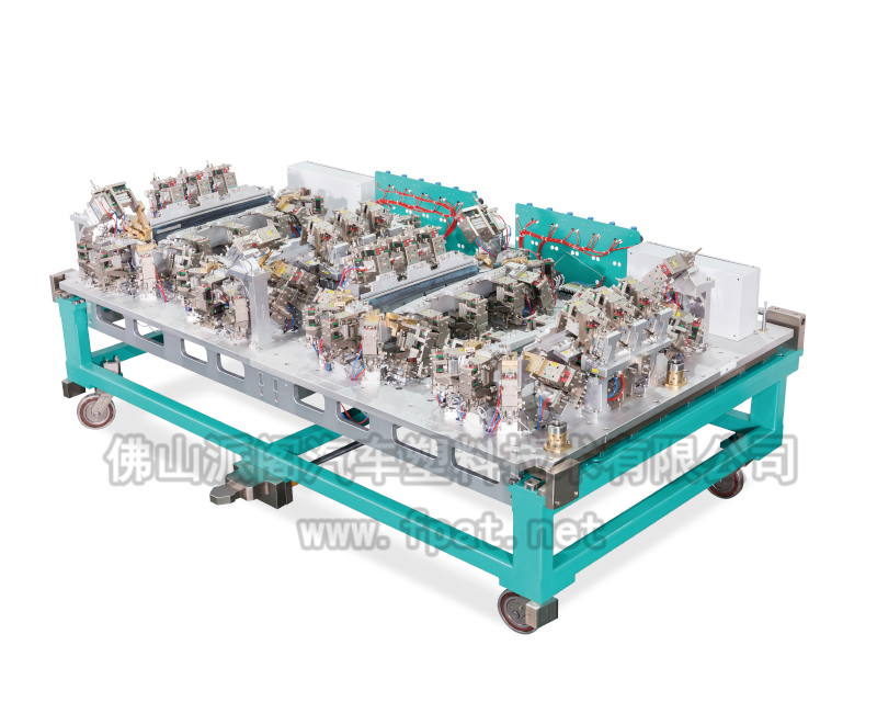 該類設備用于真空復合或壓力復合(粘接)后的零件,并將骨架四周的表皮翻邊包覆過來,多用于汽車內飾件,如門扶手、上框架、主框架、插件、天窗、手套箱、儀表板飾條等